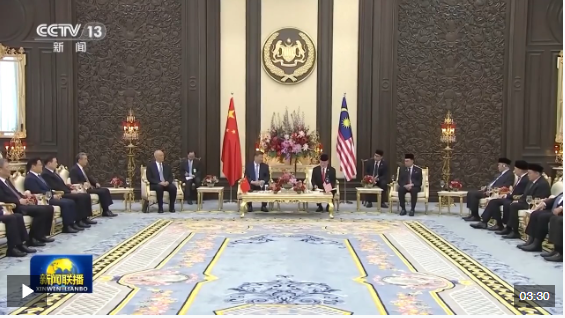 4月16日上午,馬來(lái)西亞最高元首易卜拉欣在馬來(lái)西亞國(guó)家王宮同中國(guó)國(guó)家主席習(xí)近平舉行會(huì)見(jiàn)。