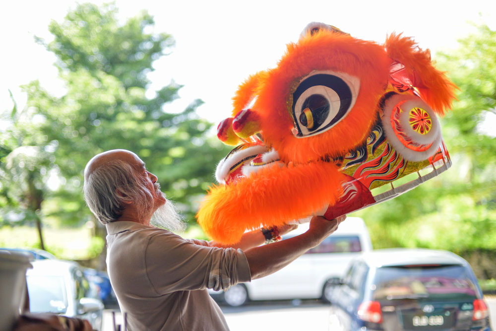 2018年2月1日,在馬來西亞雪蘭莪州沙阿蘭的梳邦濱吉蘭,蕭斐弘端起一個“獅頭”。蕭斐弘祖籍中國廣東潮州,因喜愛中華文化,從小練習(xí)舞獅,并成為一名制作獅頭的工匠。他帶領(lǐng)的獅隊屢屢在國際舞獅比賽中獲獎,成功將馬來西亞的舞獅隊伍推向國際舞臺。