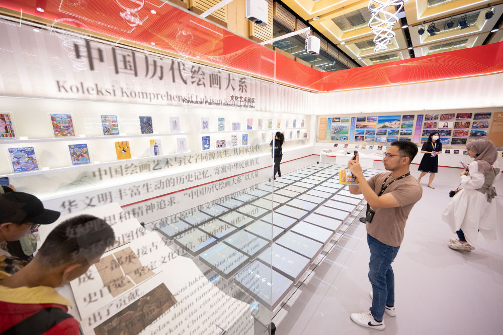 2023年5月26日,觀眾在馬來西亞吉隆坡舉行的第40屆吉隆坡國際書展上觀看“中國歷代繪畫大系”展覽。由浙江大學(xué)、浙江省文物局編纂,浙江大學(xué)出版社出版的“中國歷代繪畫大系”,收錄了海內(nèi)外263家文博機構(gòu)的紙、絹(含帛、綾)、麻等材質(zhì)的中國古代繪畫藏品12000余件(套),涵蓋了絕大部分傳世的“國寶”級繪畫珍品。