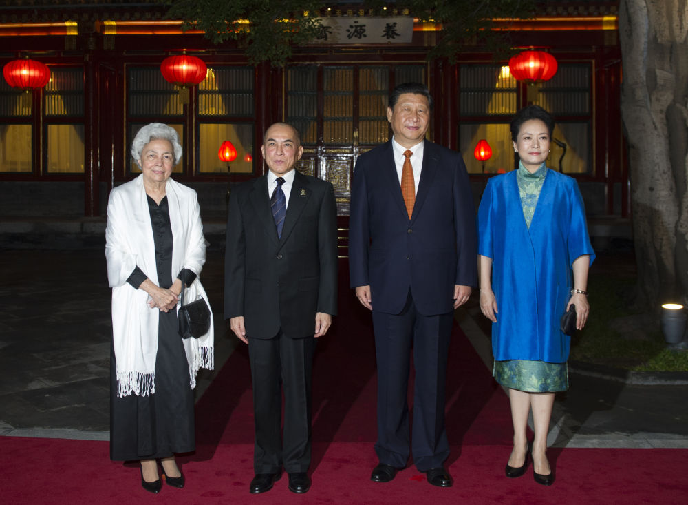 2014年9月25日晚,國家主席習(xí)近平在北京釣魚臺國賓館會見柬埔寨國王西哈莫尼和太后莫尼列。習(xí)近平主席夫人彭麗媛參加會見。