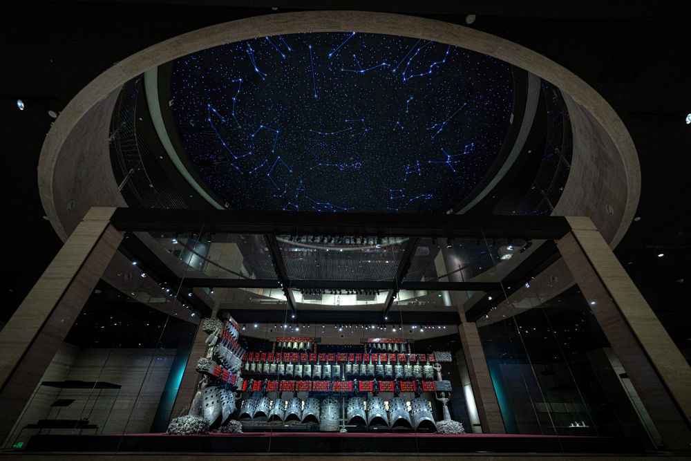 在湖北省博物館拍攝的隨州曾侯乙編鐘(2025年4月17日攝)。曾侯乙編鐘是我國出土數(shù)量最多、重量最重、音律最全、氣勢最為宏偉的一套編鐘,編鐘上的銘文是目前已知唯一的中國先秦官方音樂理論文獻,以聲音和文字相互印證的方式保存了2400多年前人類的音樂記憶。