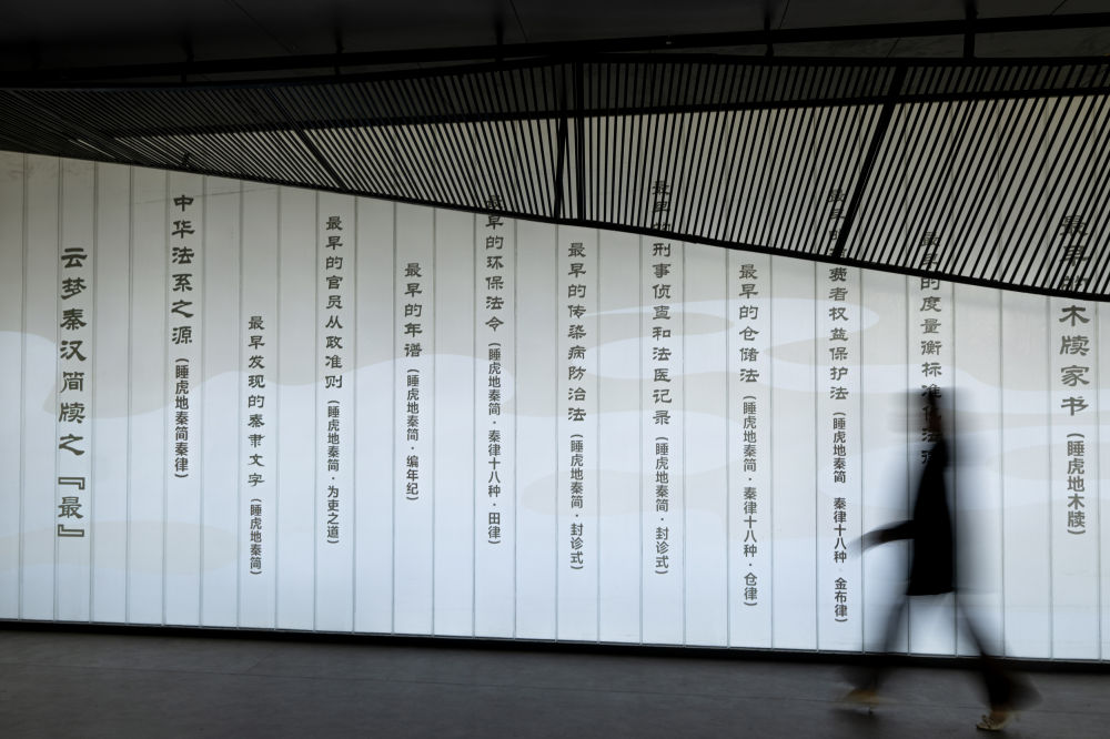 2024年4月15日,觀眾在湖北云夢縣博物館睡虎地秦簡展廳參觀。睡虎地秦簡被發(fā)現(xiàn)于1975年,是中國考古史上首次發(fā)現(xiàn)的秦簡。