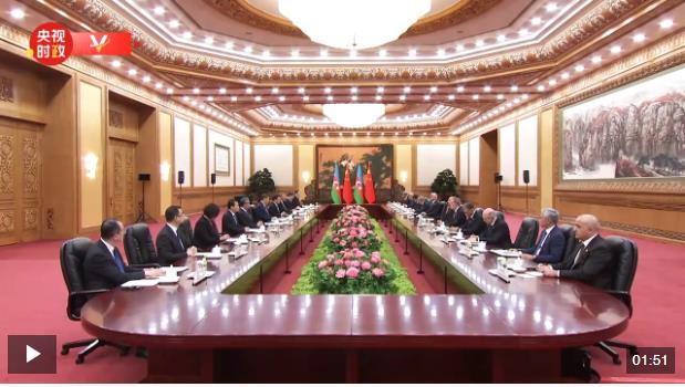 阿利耶夫說:“尊敬的習(xí)近平主席閣下,我多次應(yīng)您的邀請訪問貴國,在我看來,這恰恰體現(xiàn)了兩國之間牢固的友誼。我每次來中國,都能看到貴國在您的英明領(lǐng)導(dǎo)下又取得了新的發(fā)展,阿塞拜疆堅定恪守一個中國原則。阿塞拜疆支持中國提出的共同構(gòu)建人類命運共同體的理念,以及全球發(fā)展倡議、全球安全倡議、全球文明倡議。”