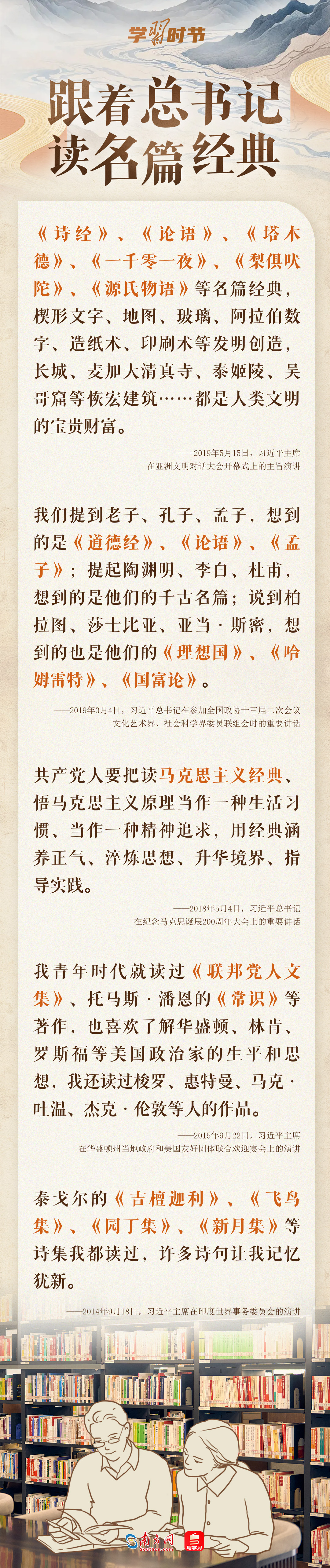 書籍是人類知識(shí)的載體,是人類智慧的結(jié)晶,是人類進(jìn)步的階梯。習(xí)近平總書記酷愛讀書,多次講述和書籍的不解之緣,分享讀書感悟。他說:“我愛好挺多,最大的愛好是讀書,讀書已成為我的一種生活方式?!?/p>