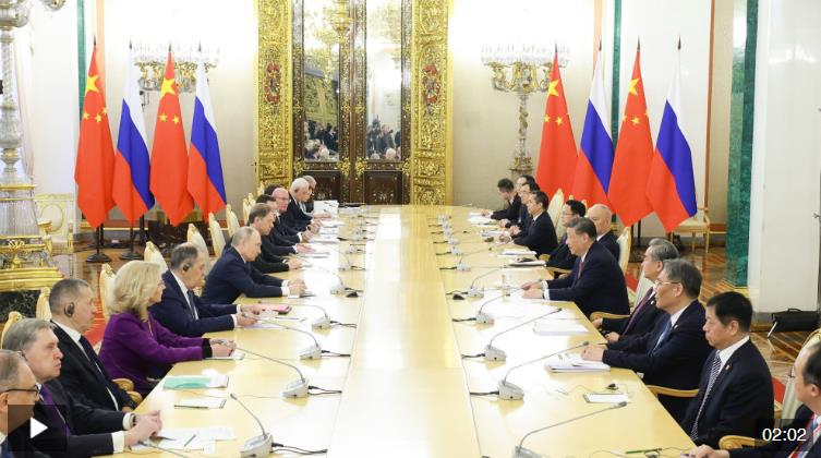 當?shù)貢r間5月8日上午,俄羅斯總統(tǒng)普京同中國國家主席習近平在莫斯科克里姆林宮舉行會談。
