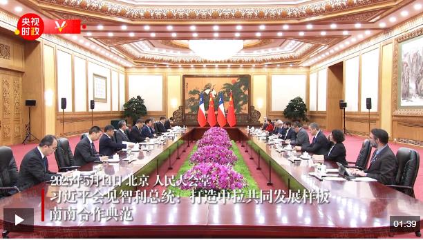 習(xí)近平指出,中國和智利要不斷豐富兩國全面戰(zhàn)略伙伴關(guān)系的時代內(nèi)涵,打造中拉共同發(fā)展樣板、南南合作典范,共同促進(jìn)人類和平和進(jìn)步事業(yè)。