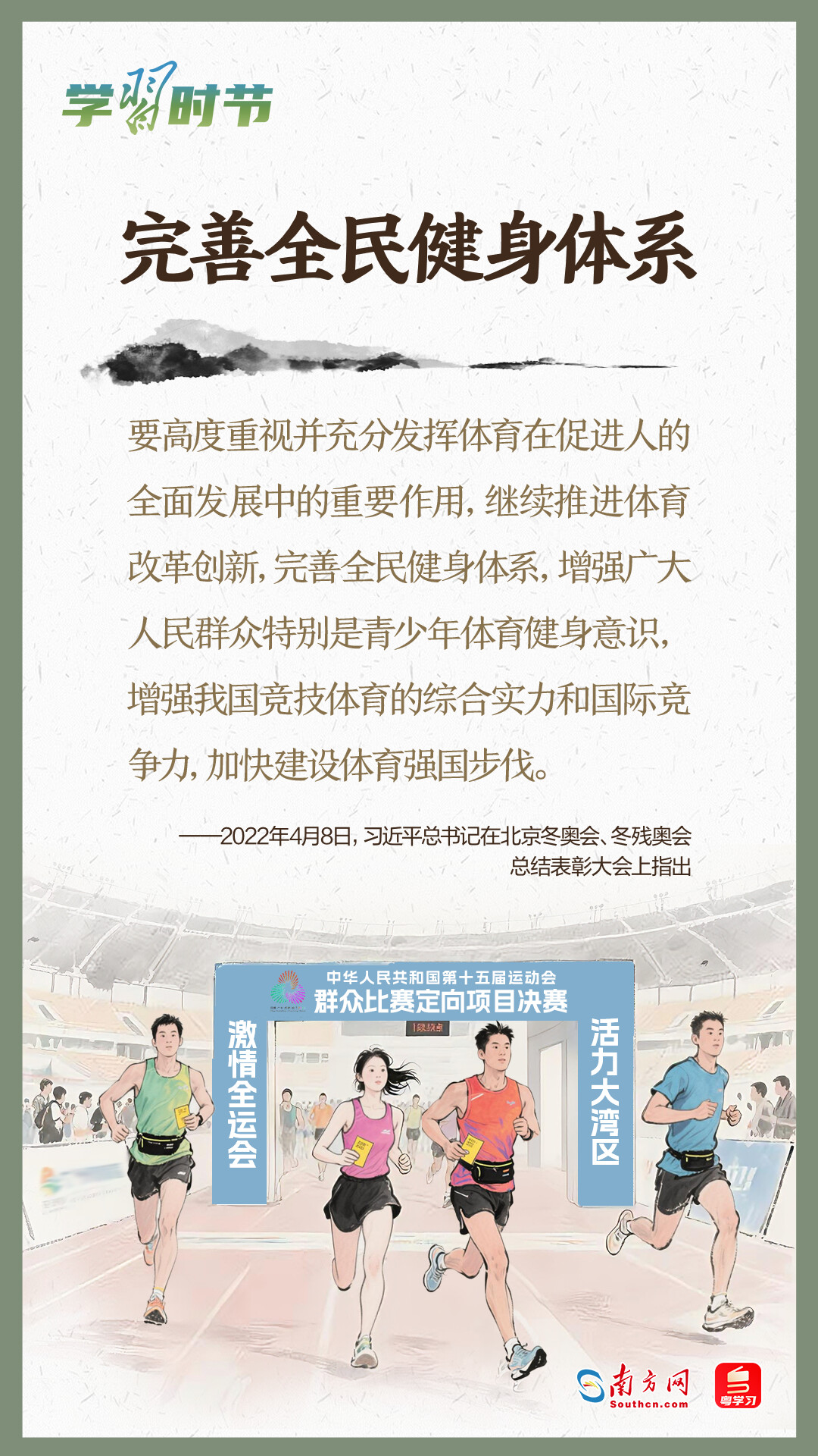 今年5月17日拉開帷幕的第十一屆全民營養(yǎng)周,以“吃動平衡 健康體重 全民行動”為主題,向全社會傳遞運(yùn)動和飲食在健康生活中同等重要的理念。而今年11月至12月由粵港澳三地共同承辦的十五運(yùn)會和殘?zhí)貖W會,充分發(fā)揮賽事的“全民性”,將群眾體育發(fā)展推向新高度。