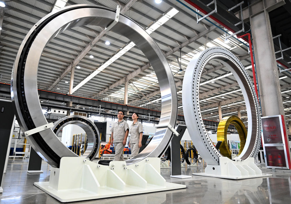 那是一款風(fēng)力發(fā)電主軸承,每轉(zhuǎn)動一圈可發(fā)電超34千瓦時。