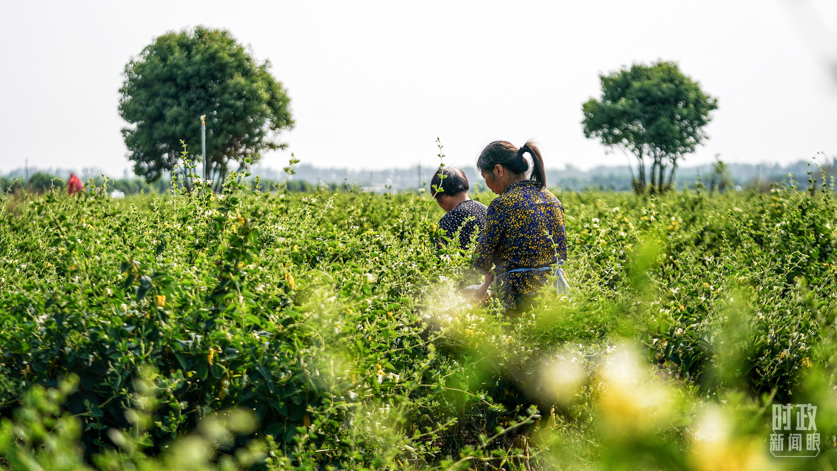 五月,河南農(nóng)民采摘金銀花。(總臺(tái)國廣記者李晉拍攝)