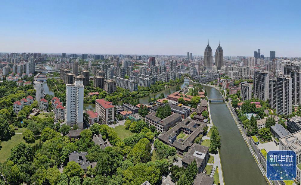 蘇州河華東政法大學(xué)段的歷史建筑群(無人機(jī)照片,2023年3月3日攝)。