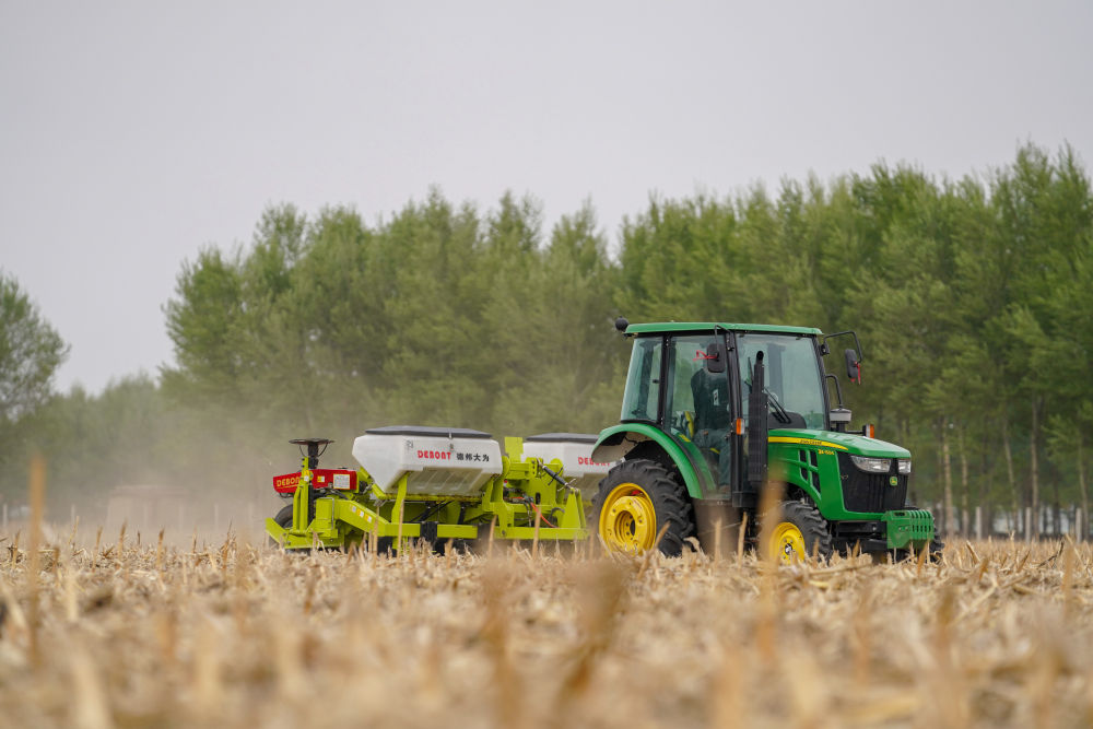 經(jīng)過(guò)多年試驗(yàn)和推廣,東北逐步形成以秸稈覆蓋、少耕免耕為特點(diǎn)的吉林“梨樹(shù)模式”等多種行之有效的保護(hù)性耕作模式。這是2020年5月7日,吉林省四平市梨樹(shù)縣的農(nóng)民駕駛免耕播種機(jī)播種玉米。