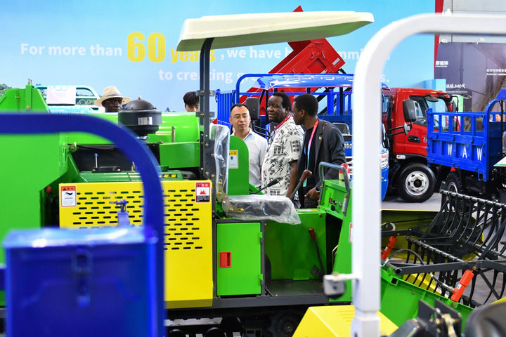 2025年6月14日,觀眾在長(zhǎng)沙國際會(huì)展中心參觀農(nóng)機(jī)設(shè)備。6月12日至15日,第四屆中國—非洲經(jīng)貿(mào)博覽會(huì)在湖南長(zhǎng)沙舉行。新華社記者 陳振海 攝