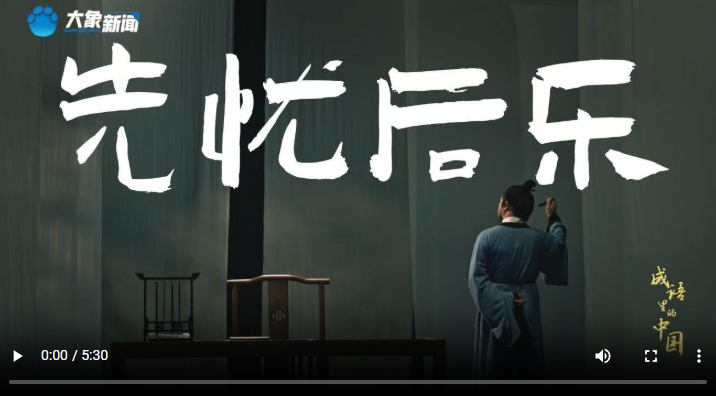 《文脈華章|成語里的中國:先憂后樂》詳細解讀“先天下之憂而憂,后天下之樂而樂”的淵源、內涵、時代意義,我們一起感悟總書記反復強調這句話的深意。