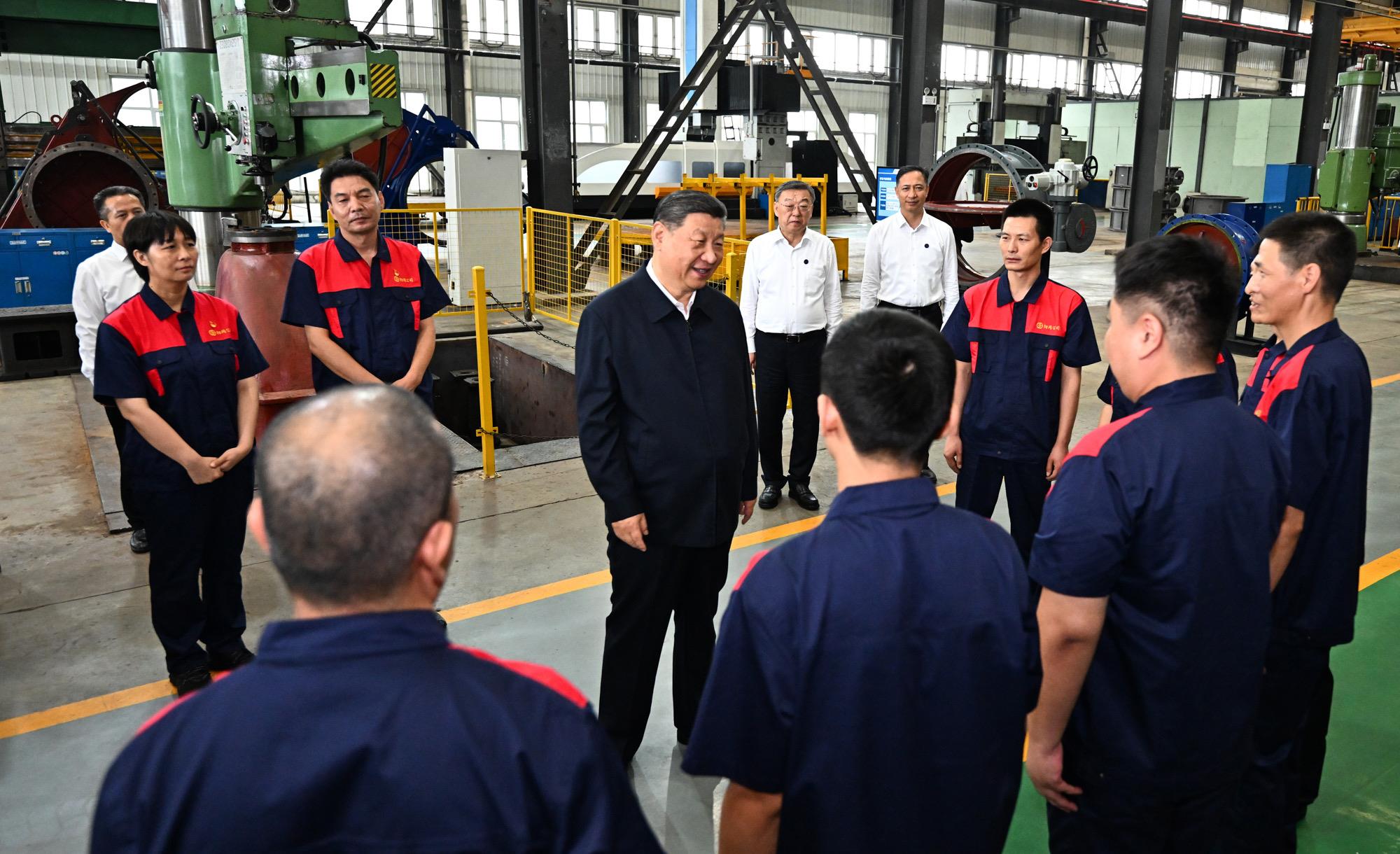 2025年7月7日,習(xí)近平總書記在山西陽泉閥門股份有限公司考察時,同企業(yè)員工親切交流。