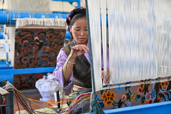 2025年7月18日,江孜藏毯文化發(fā)展有限責(zé)任公司的員工在生產(chǎn)車(chē)間內(nèi)編織藏毯。西藏日喀則市江孜縣是著名的藏毯(藏族稱為“卡墊”)之鄉(xiāng),織毯歷史悠久。藏族卡墊織造技藝于2006年被列入國(guó)家級(jí)非物質(zhì)文化遺產(chǎn)代表性項(xiàng)目名錄。近年來(lái),江孜藏毯在守護(hù)傳統(tǒng)技藝的同時(shí)積極創(chuàng)新,通過(guò)建立合作社、開(kāi)辦技能培訓(xùn)班等方式擴(kuò)大靈活就業(yè)規(guī)模,讓更多人在家門(mén)口織藏毯增收。