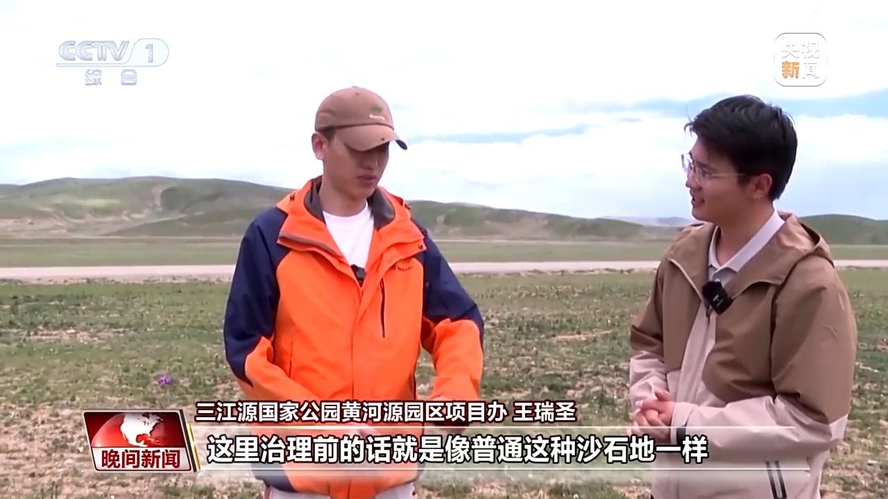 在海拔4300米的三江源黃河源園區(qū),茂密的草場(chǎng)一望無(wú)際,但是這片綠其實(shí)來(lái)之不易。這片區(qū)域,黑土灘的情況一度非常嚴(yán)重,黑土灘每擴(kuò)張一分,草場(chǎng)就退縮一分。