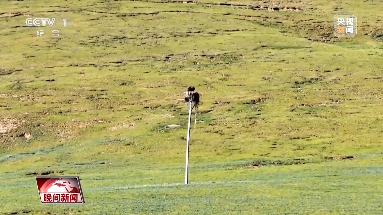 現(xiàn)在的三江源草原上,每隔一段距離就會(huì)有這樣一根孤零零的水泥桿。它有一個(gè)非常形象的名字,叫招鷹滅鼠架,老鷹在觀察臺(tái)上觀察目標(biāo),瞄準(zhǔn)沖擊。這也是三江源國(guó)家公園保護(hù)草場(chǎng),防治鼠害的一項(xiàng)有力措施。