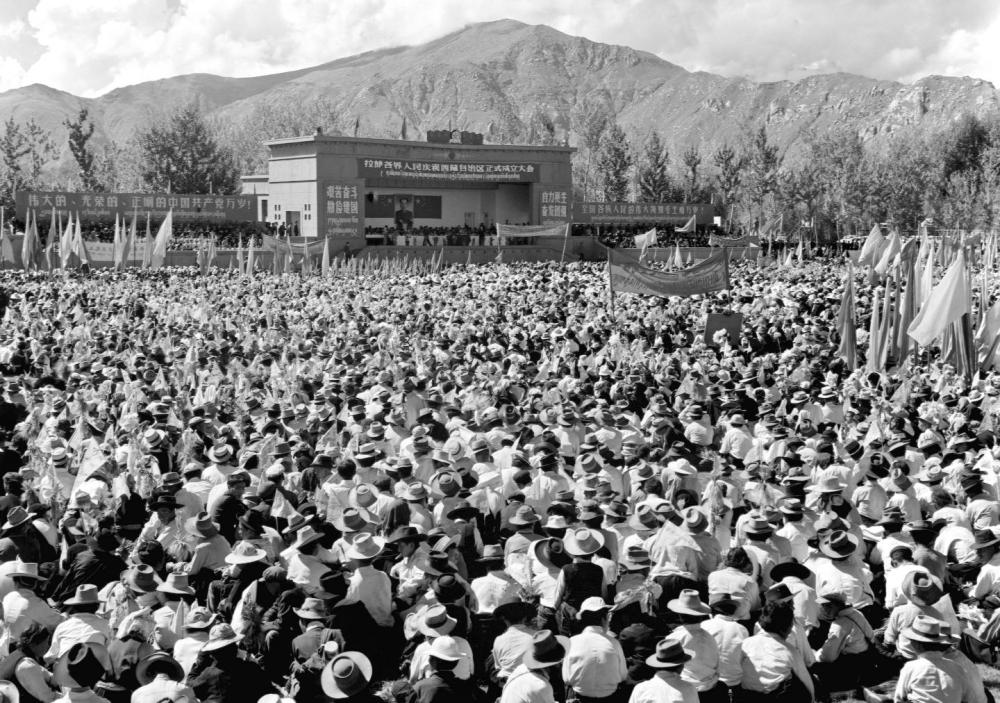 1965年9月9日,西藏自治區(qū)首府拉薩市3萬(wàn)多人集會(huì),熱烈慶祝西藏自治區(qū)正式成立。(新華社記者 馬競(jìng)秋 攝)