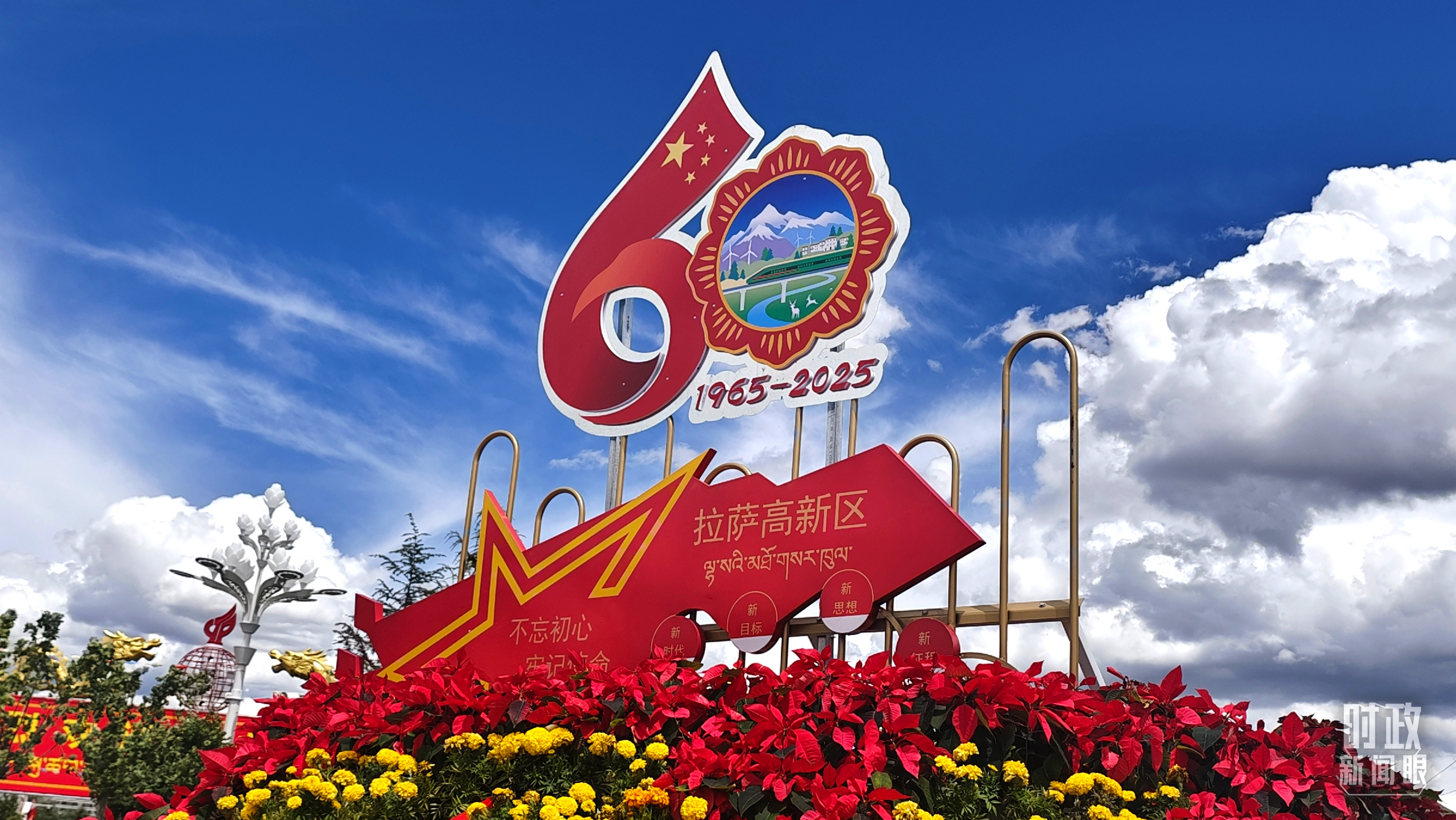 西藏自治區(qū)成立60周年標(biāo)識(shí)。(總臺(tái)央視記者韓銳拍攝)