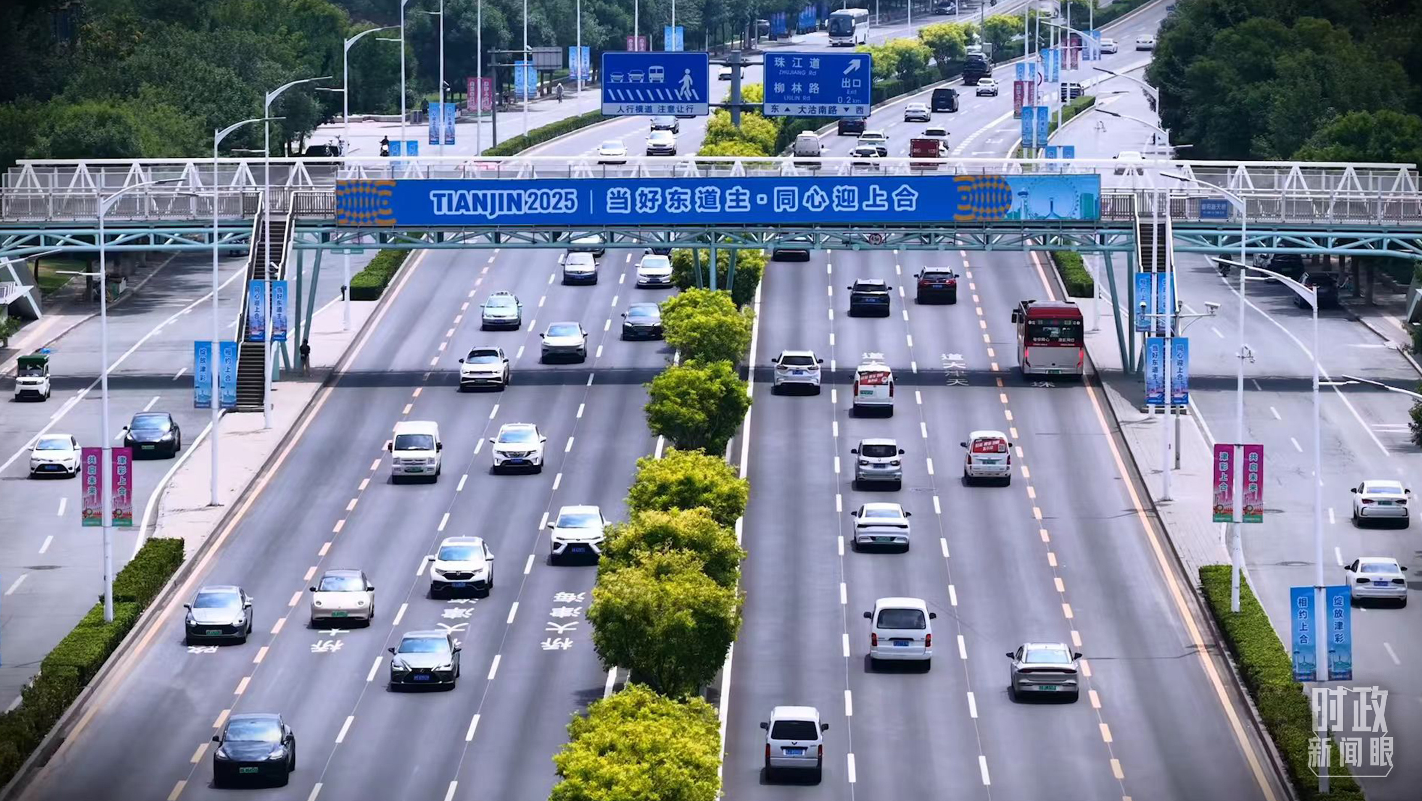 天津街頭的上合組織標(biāo)語。(總臺(tái)記者孫強(qiáng)拍攝)