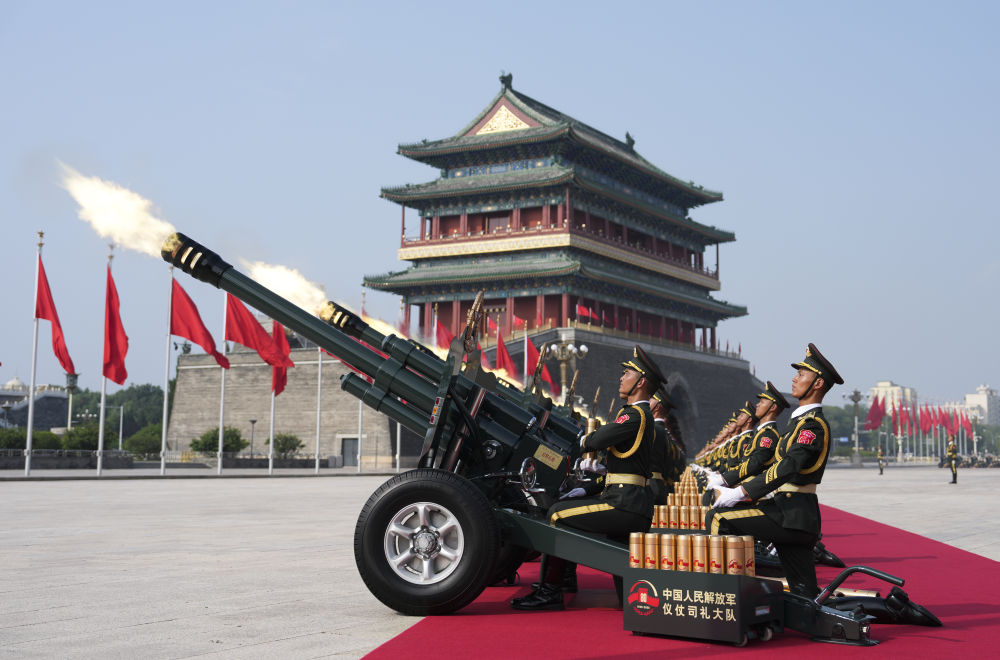 2025年9月3日,紀(jì)念中國人民抗日戰(zhàn)爭暨世界反法西斯戰(zhàn)爭勝利80周年大會在北京隆重舉行。這是禮炮在天安門廣場鳴響。