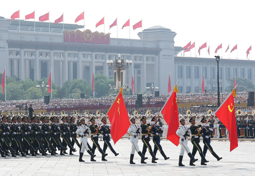2025年9月3日,紀(jì)念中國人民抗日戰(zhàn)爭暨世界反法西斯戰(zhàn)爭勝利80周年大會在北京隆重舉行。這是戰(zhàn)旗方隊(duì)接受檢閱。