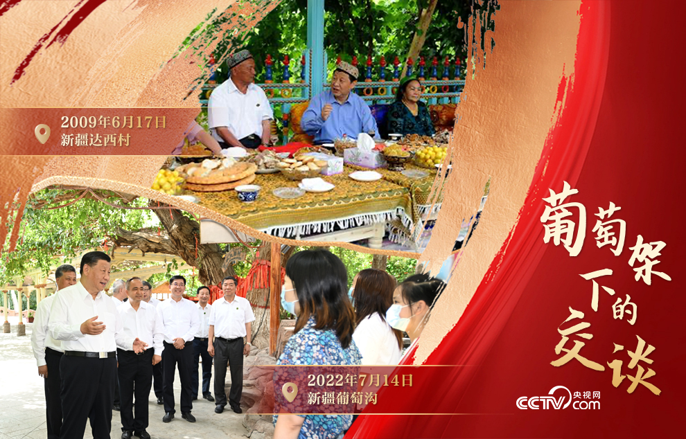 這段對話,發(fā)生于2022年7月14日。那天下午,習近平總書記來到新疆吐魯番的葡萄溝,與來自天南海北的游客親切交談。