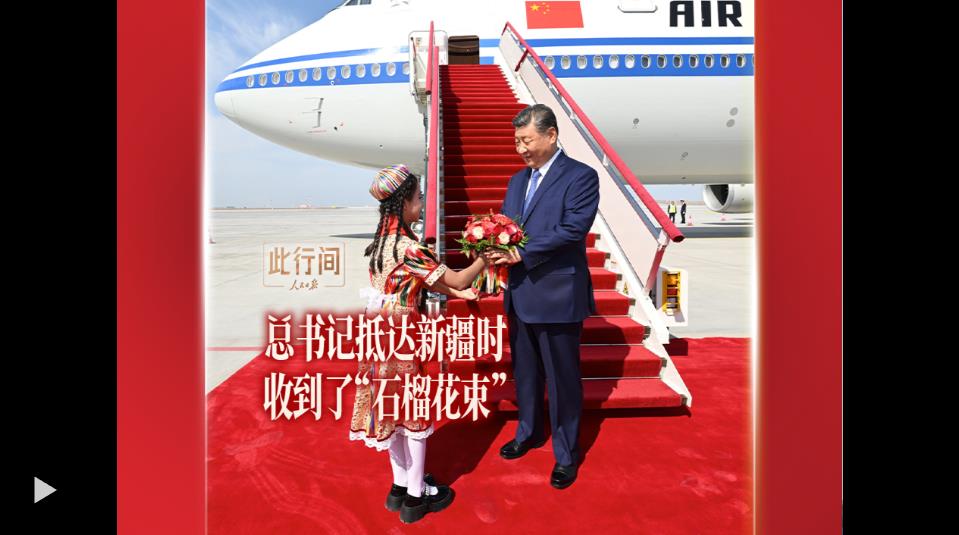 習近平率中央代表團23日下午乘專機抵達烏魯木齊,出席新疆維吾爾自治區(qū)成立70周年慶?;顒樱陆髯迦罕娫跈C場熱烈歡迎。總書記收到的花束里,裝點了美麗的石榴。如今,“石榴籽”的妙喻為人熟知,民族團結觀念深入人心。