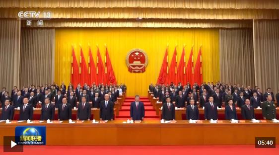 上午10時30分許,在歡快的樂曲聲中,習(xí)近平等領(lǐng)導(dǎo)同志走上主席臺,全場響起長時間的熱烈掌聲。