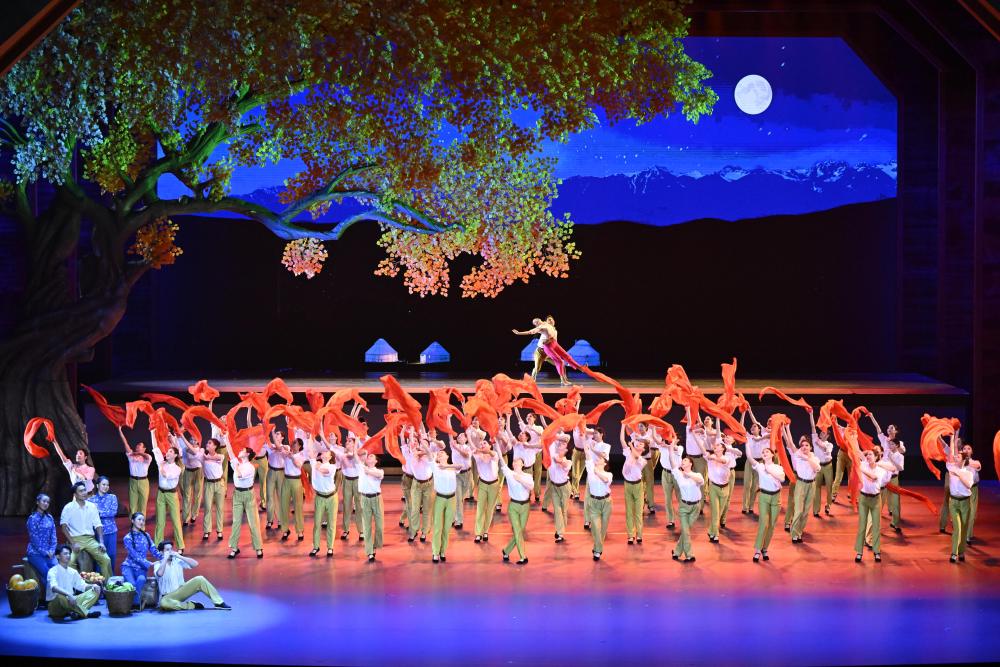 演出共3個(gè)篇章,展現(xiàn)新疆社會(huì)主義建設(shè)的火熱場(chǎng)景,表現(xiàn)改革開放給新疆帶來的蓬勃生機(jī),描繪新疆各族兒女同心筑夢(mèng)新時(shí)代的美好圖景。