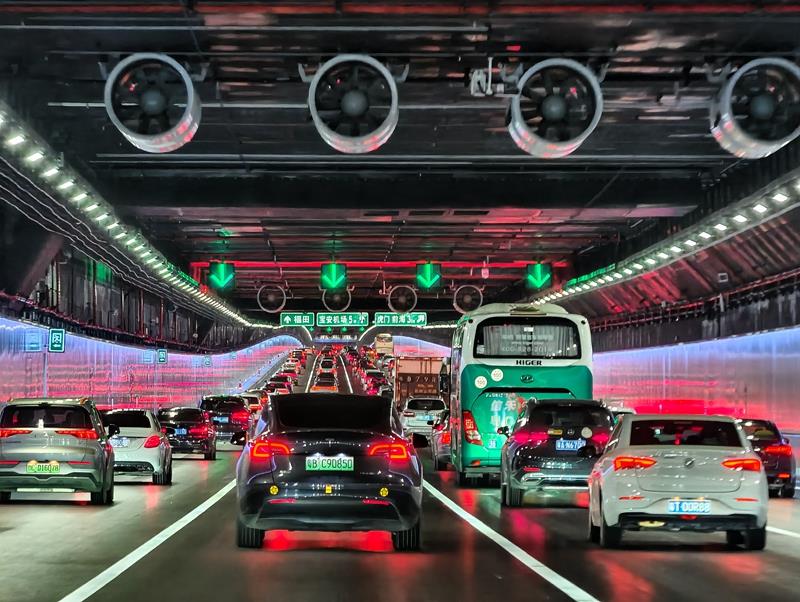 △2024年6月30日,深中通道正式通車,這是開(kāi)通首日的深中通道海底沉管隧道內(nèi)的車流。