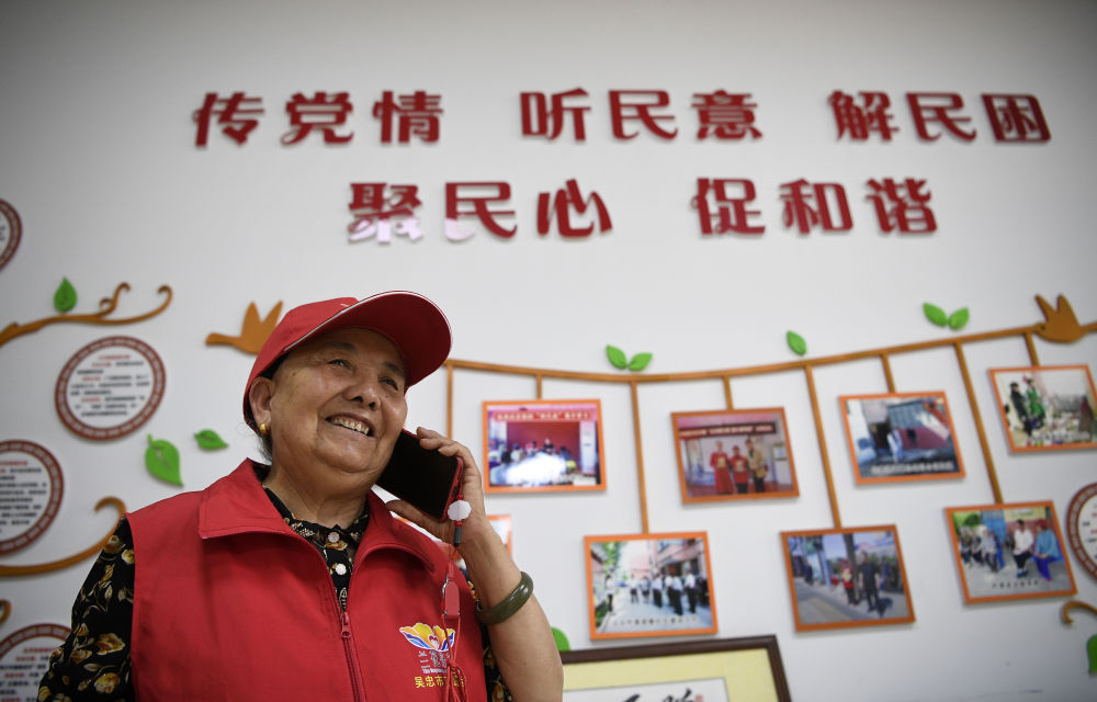 2005年,寧夏吳忠市回族婦女王蘭花從社區(qū)居委會主任崗位退休后,與6名老同事成立了“王蘭花熱心小組”。她帶領(lǐng)團(tuán)隊(duì)二十年如一日堅(jiān)持志愿服務(wù),每天奔走在社區(qū)各個(gè)角落,照顧空巢老人、留守兒童,化解矛盾糾紛,幫助解決社區(qū)居民的操心事、煩心事、揪心事,用無私奉獻(xiàn)溫暖著每一個(gè)人的心田,成為社區(qū)志愿服務(wù)“領(lǐng)頭羊”,吸引越來越多的人加入志愿服務(wù)隊(duì)伍。這是2021年6月16日,王蘭花在社區(qū)工作站與居民通電話。