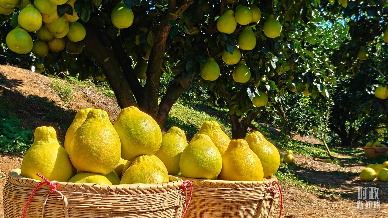 △南福金柚種植基地,柚林迎來豐收。(總臺記者吳媚苗、總臺央視記者鄂介甫拍攝)