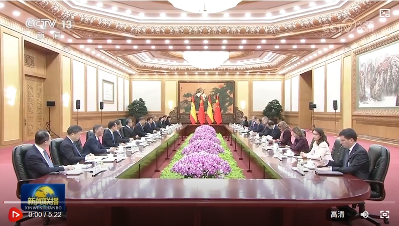 習(xí)近平歡迎費(fèi)利佩六世國王訪華,指出中國和西班牙都有深厚的歷史文化底蘊(yùn)。建交50多年來,兩國堅(jiān)持從戰(zhàn)略高度和長遠(yuǎn)角度看待和發(fā)展雙邊關(guān)系,相互尊重、相互支持、相互成就,樹立了不同歷史文化、不同社會制度國家友好相處、共謀發(fā)展的典范,也為推動全球開放合作、維護(hù)國際公平正義發(fā)揮了重要作用。西班牙王室為中西關(guān)系發(fā)展作出了突出貢獻(xiàn)。在兩國迎來建立全面戰(zhàn)略伙伴關(guān)系20周年之際,費(fèi)利佩六世國王對中國進(jìn)行國事訪問,對推動兩國友好合作不斷向前發(fā)展具有重要意義。
