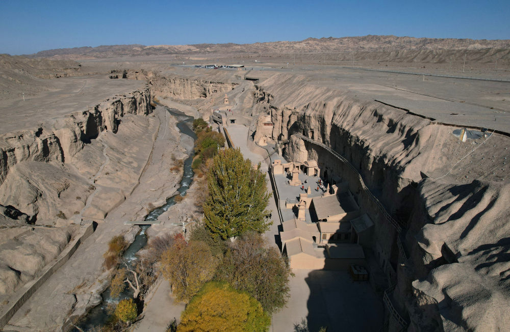 位于甘肅瓜州縣的榆林窟(2025年10月31日攝,無人機(jī)照片)。