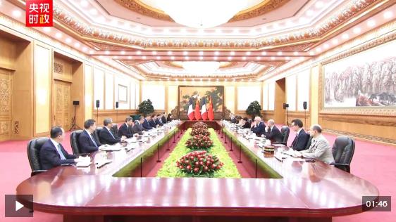 馬克龍說:“感謝主席先生,繼此前對(duì)北京和廣州的訪問后,我們雙方?jīng)Q定全方位深化中法雙邊關(guān)系。當(dāng)前國際局勢(shì)復(fù)雜多變,多邊秩序面臨嚴(yán)峻危機(jī)。在此背景下,保持中法兩國之間的對(duì)話與溝通尤為重要。我們?cè)谠S多問題上有著廣泛共識(shí),中法兩國作為負(fù)責(zé)任的大國,肩負(fù)著求同存異、構(gòu)建務(wù)實(shí)合作機(jī)制,踐行我們共同堅(jiān)持的多邊主義使命?!?/p>