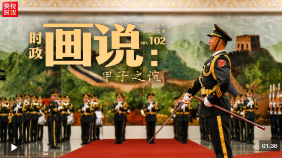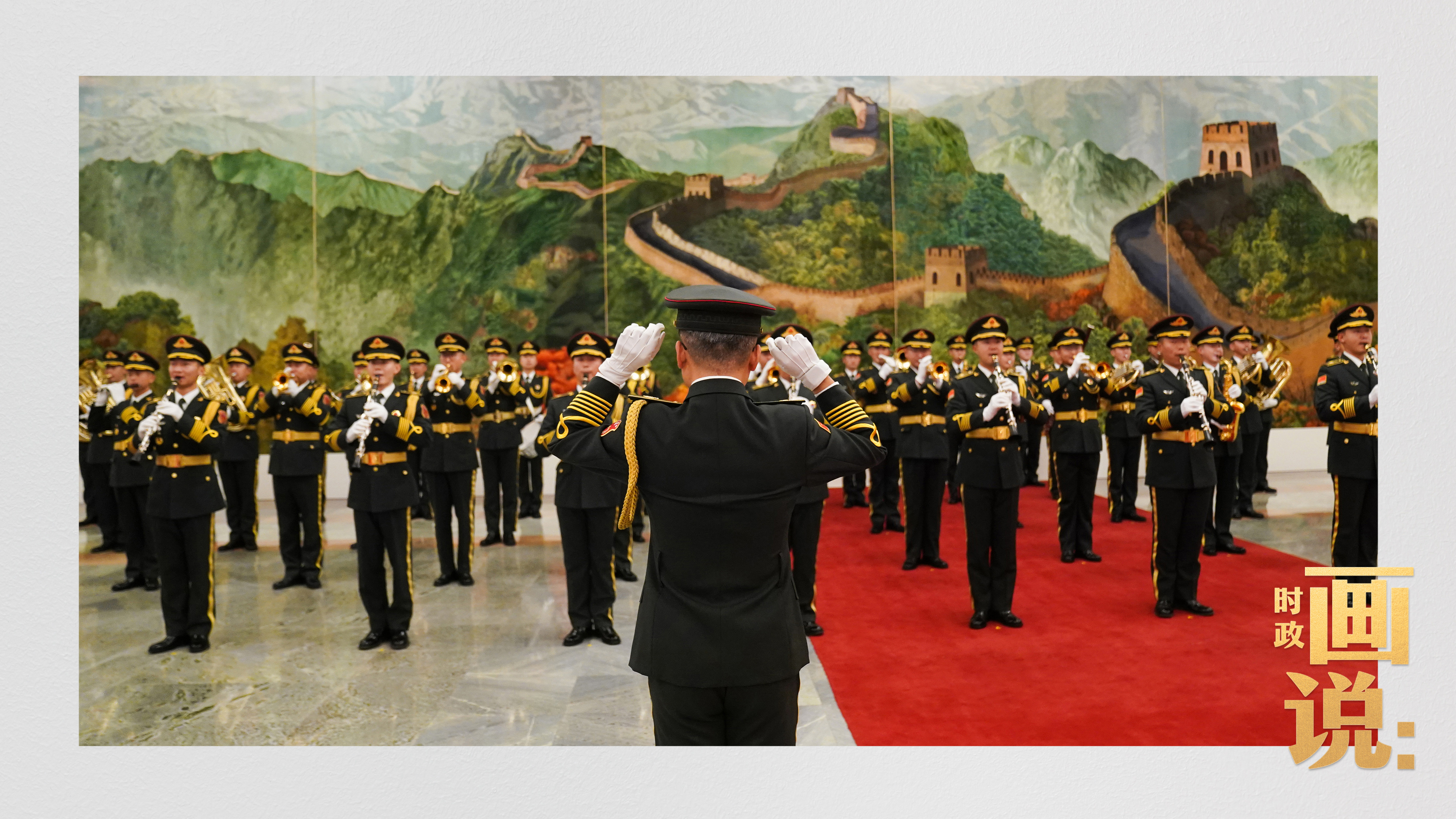 △馬克龍?jiān)诹?xí)近平陪同下檢閱中國(guó)人民解放軍儀仗隊(duì)并觀看分列式