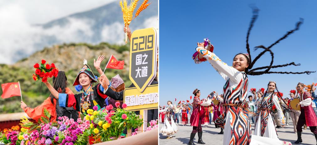 左圖:2025年8月21日上午,彩車上的演員通過西藏拉薩市布達(dá)拉宮廣場(chǎng)時(shí)向人群揮手,熱烈慶祝西藏自治區(qū)成立60周年。