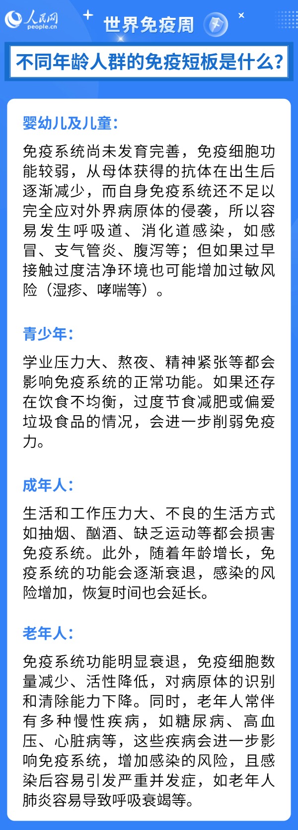 4月最后一周是世界免疫周。據(jù)說,免疫力提高了,身體好,不容易生病,即使生病也比較容易恢復(fù)……那么免疫力到底是什么?不同年齡人群的免疫短板是什么?為此,人民網(wǎng)采訪了清華大學(xué)第一附屬醫(yī)院預(yù)防保健科副主任醫(yī)師鄭東旖。