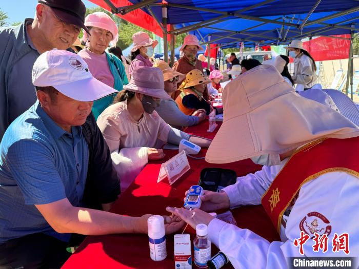 資料圖為青海省海南藏族自治州貴德縣“健康教育萬里行”活動現(xiàn)場,醫(yī)務(wù)人員給農(nóng)牧民測血糖。祁繡娟 攝