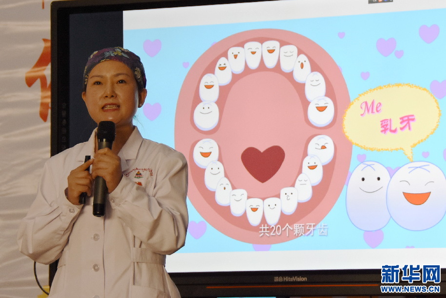 這是18日在西藏山南市第三小學(xué)禮堂的一個場景。在全國愛牙日來臨之際,湖南省第九批援藏工作隊組織的愛牙公益活動于當(dāng)日舉行。中南大學(xué)湘雅口腔醫(yī)(學(xué))院援藏醫(yī)生李毅萍為在場的300多名小學(xué)生和家長,做了一場生動活潑的口腔衛(wèi)生知識科普。