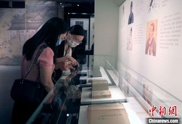 觀眾在觀看展出的中國(guó)傳統(tǒng)醫(yī)學(xué)文獻(xiàn)。 王磊 攝