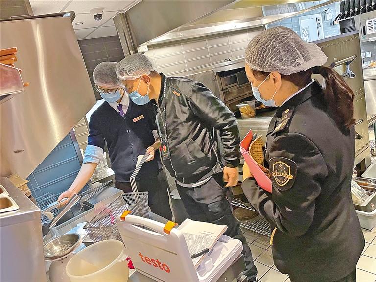“最近才因?yàn)槭称钒踩珕栴}上了微博熱搜,您不擔(dān)心嗎?”面對(duì)提問 ,市民張女士掏出手機(jī),向記者展示了一份檢查結(jié)果通報(bào):“從檢查情況看,未發(fā)現(xiàn)曝光的‘死蟹當(dāng)活蟹賣、大量使用過期食材’等問題。因全區(qū)禁止進(jìn)口冷鏈?zhǔn)称方?jīng)營(yíng),該商家并未采購(gòu)進(jìn)口及國(guó)產(chǎn)蟹,也暫未提供‘肉蟹堡’菜品,主要經(jīng)營(yíng)‘雞爪堡’‘排骨堡’等菜品;豬蹄、牛肋排等食材為當(dāng)天煮制冷藏,保證2天內(nèi)使用完畢……”
