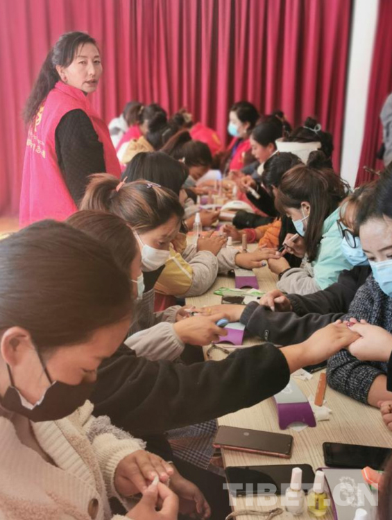 圖為恩惠苑社區(qū)的部分需要就業(yè)婦女在培訓(xùn)老師指導(dǎo)下進行美甲實操