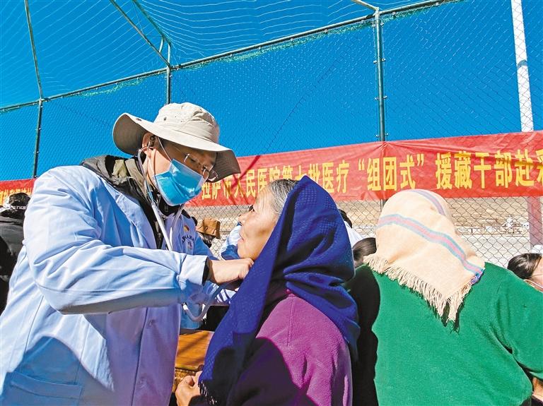 圖為近日,北京第七批組團式援藏醫(yī)療隊前往羊八井彩渠塘村開展慰問、義診送藥活動現(xiàn)場。記者 索朗瓊珠 次仁片多 攝