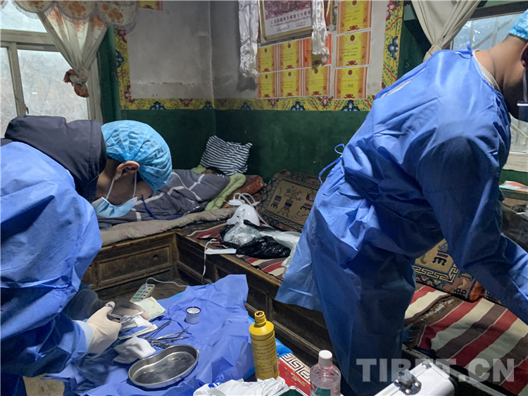 臨近藏歷新年,家屬提出要帶扎西尼瑪回家過(guò)年。經(jīng)過(guò)北京專家遠(yuǎn)程會(huì)診,洛隆縣人民醫(yī)院的青年專家們決心滿足扎西尼瑪?shù)脑竿?,帶上醫(yī)療設(shè)備住進(jìn)了扎西尼瑪?shù)募依铮?/p>