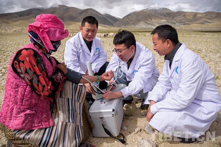 圖為醫(yī)療援藏專家在農(nóng)牧區(qū)義診
