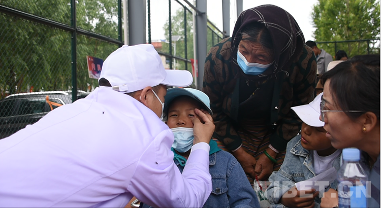 年過(guò)花甲的嘎瑪央吉帶著上小學(xué)的孫女走進(jìn)義診區(qū),她是拉薩市尼木縣續(xù)邁鄉(xiāng)安崗村的村民,也是7月8日當(dāng)天義診活動(dòng)中患者之一?!拔一加嘘P(guān)節(jié)炎和骨質(zhì)增生,腸胃也不太好,而我今天主要來(lái)檢查我孫女的眼睛,她常流眼淚,總是跟我們說(shuō)眼睛不舒服,我們一家子人都很擔(dān)心。聽(tīng)說(shuō)今天來(lái)鄉(xiāng)里義診的醫(yī)生都是來(lái)自全國(guó)各地的知名專(zhuān)家,特地來(lái)看看?!崩先讼蜥t(yī)生及鄉(xiāng)里的翻譯人員講述自己及孫女的狀況。