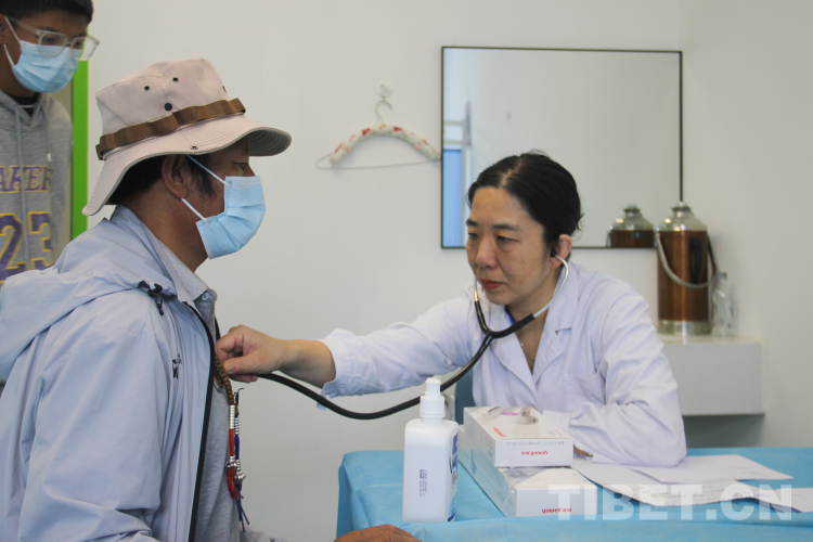 圖為義診專家在拉薩市城關區(qū)人民醫(yī)院為患者聽診 攝影:旦曲