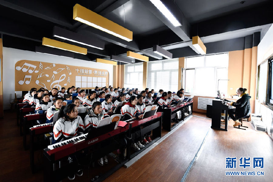 3月16日,在果洛藏族自治州職業(yè)技術(shù)學(xué)校,2020級(jí)學(xué)前教育專業(yè)學(xué)生在上音樂(lè)課。新華社記者 張龍 攝